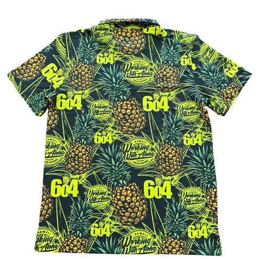 604 X WWA - SHORT SLEEVE POLO - NEON GREEN PINEAPPLE
