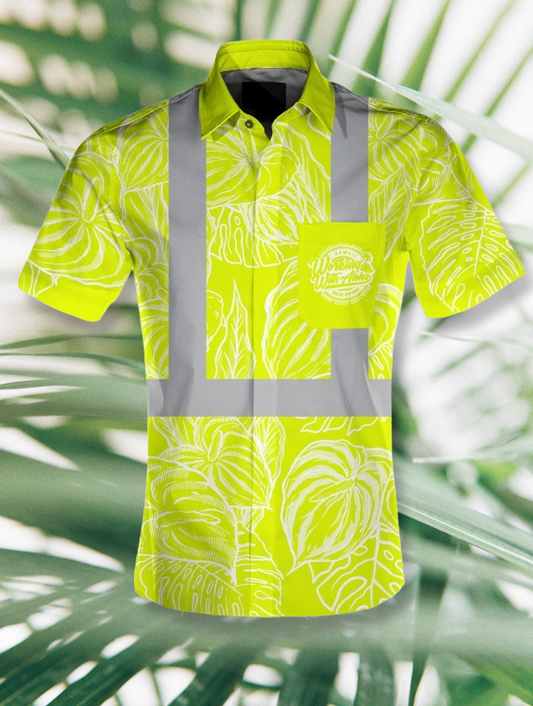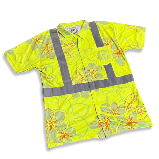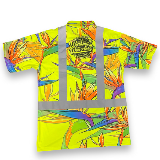 Yellow-Tropical Flowers - HI VIS Aloha polo