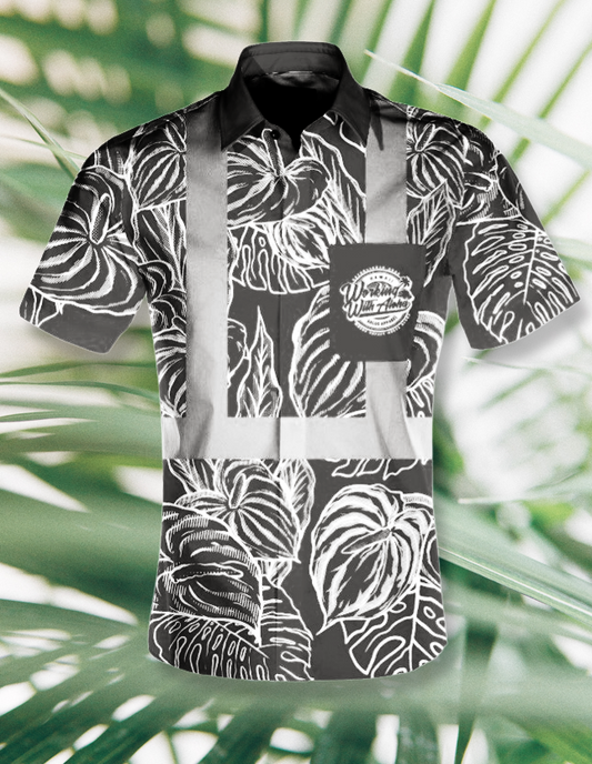 Sold outBlack - Hibiscus HI VIS aloha polos
