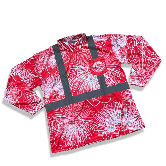 OHIA LEHUA - LONG SLEEVE POLO-RED