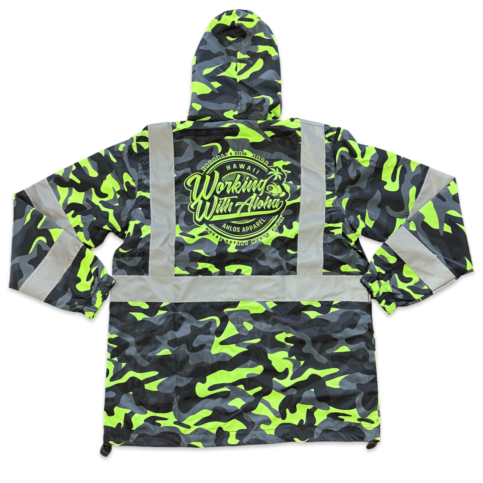 Stay visible, dry, and comfortable with our Green Camo Windbreaker, designed for those who work hard and live with aloha. Built for the outdoors and demanding workdays, this jacket offers the perfect balance of function and durability.